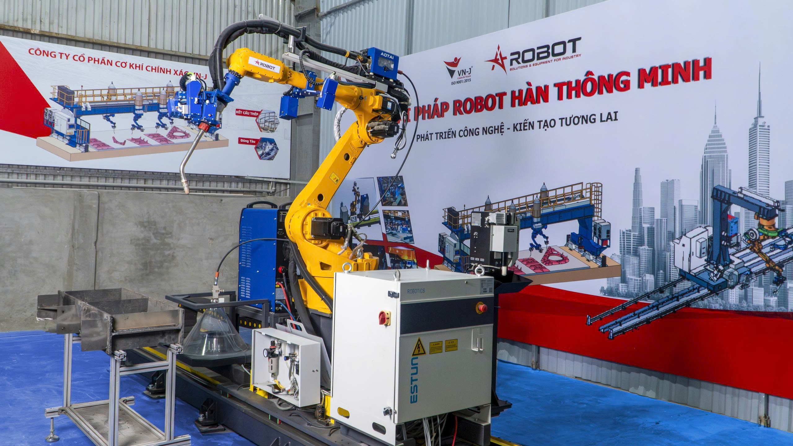 Trạm robot hàn tự động AiRobot được thiết kế để đáp ứng nhu cầu hàn tự động trong nhiều ngành công nghiệp như sản xuất kết cấu thép, đóng tàu và chế tạo thiết bị công nghiệp. Hệ thống cho phép gia công các chi tiết có kích thước lớn với độ chính xác cao, giúp nâng cao năng suất và đảm bảo chất lượng mối hàn ổn định.