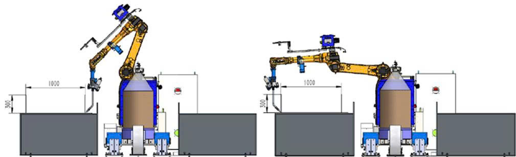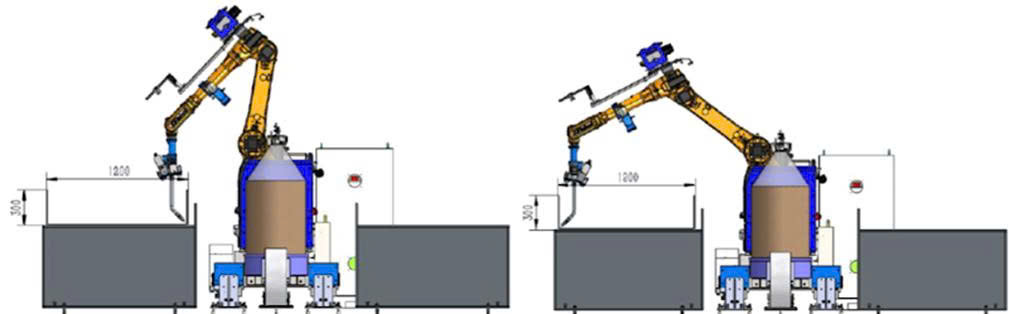 - Bàn làm việc hai bên: Cho phép robot hàn ở một bên trong khi bên còn lại tiến hành nạp hoặc tháo phôi, giúp giảm thời gian chờ và tăng năng suất.